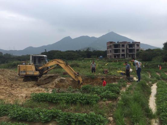 。由于管道位于农田底下,农田种满庄稼且泥土较松,因此,挖土机