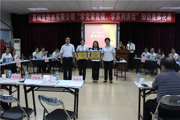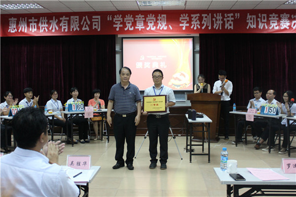 市供水公司党委书记、董事长、总经理吴胜华向获奖队伍表示祝贺,并对所有参赛队员的努力表示肯定。他指出:党章党规和系列讲话是党员干部的行为准则和规范,全体党员干部一定要加强学习,忆党史、铭党恩、强党性、促党建、肃党纪、正党风,进一步继承和发扬党的优良传统,进一步体现党员的先进性和组织凝聚力,进一步展示党建工作的特色和亮点,在供水发展进程中高扬党旗、再接再厉,创造更大的辉煌。(市供水公司)
