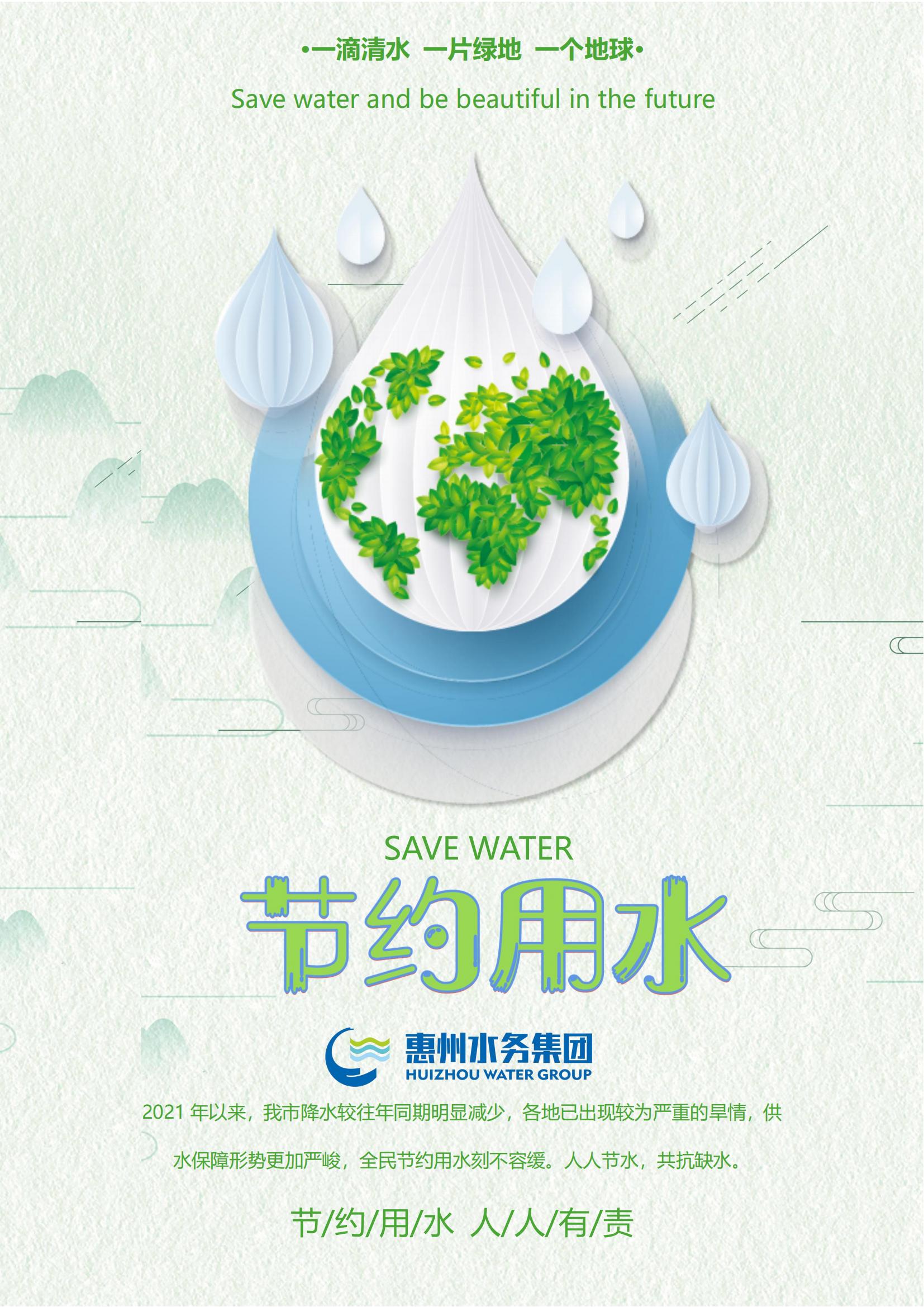 亲爱的同事们,“人人节水,共抗缺水”。让我们积极行动起来,以实际行动支持全市节水工作,从自身做起,从现在做起,珍惜每一滴水,为建设资源节约型、环境友好型的社会贡献自己的力量!