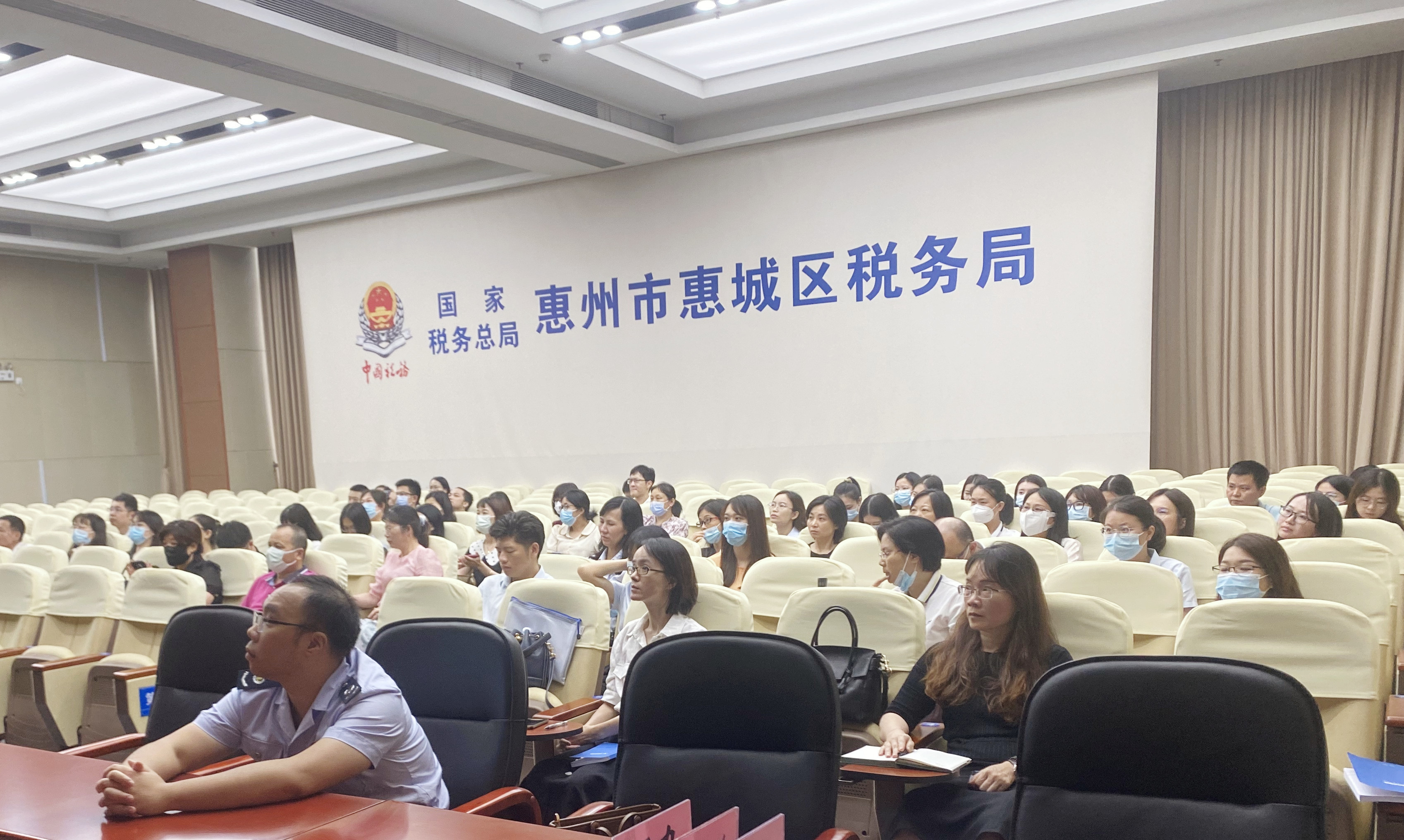 6月20日下午,五楼自拍 参加由市税务局与市国资委共同举办的市属国企税收政策辅导会,辅导会会场安排在惠城区第一税务分局,由市税务局副局长何力主持,惠城区税务局执法员现场主讲辅导,集团财务部及所属各企业财务人员约60人现场参与。