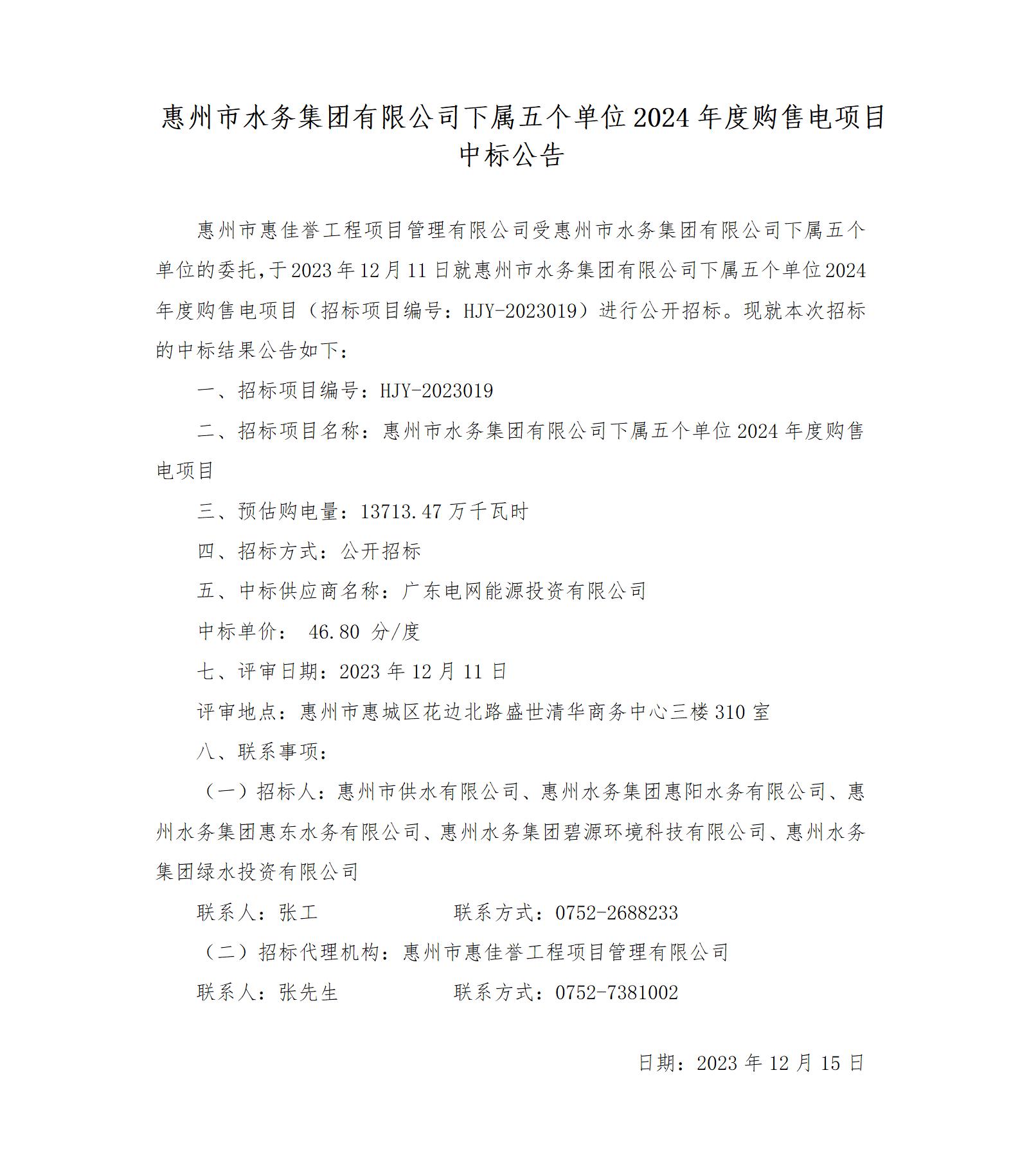 五楼自拍 下属五个单位2024年度购售电项目中标公告