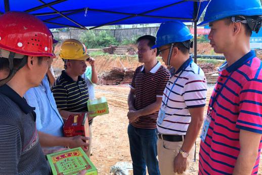 分别前往项目沿线各个施工现场,为一线施工人员送去防暑降温用品。在平山标段鲤鱼岭泵站施工现场,杨汉雄书记要求施工单位加强安全意识,认真做好夏季防暑降温工作措施的同时,倒排工期,规范作业。在稔山标段石门山施工现场,陈璐书记要求施工单位切实保障好一线施工人员身体健康,防止夏季高温作业中暑的同时,抓住当前晴好天气,赶抢建设进度。