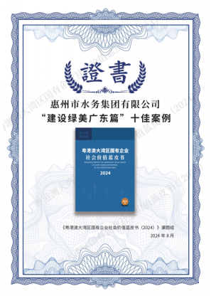 2024年上半年,论坛课题组向广东省属及21个地市国企发放企业社会价值管理问卷,根据问卷结果系统分析了大湾区国有企业社会责任管理现状,收集筛选了助力乡村振兴、服务湾区发展、做强做优主业、发展新质生产力、建设绿美广东、创造综合价值等六大维度的十佳案例,形成了24余万字的蓝皮书,供决策者及社会解读参考。五楼自拍 申报的“重现岭南水城,展现生态文明”获评建设绿美广东十佳案例,并收录在《粤港澳大湾区国有企业社会价值蓝皮书(2024)》中,为惠州市唯一入选案例。