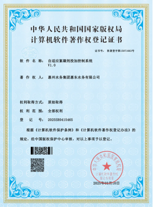 基本信息 软件全称: 自适应絮凝剂投加控制系统 登记号: 2025SR0415465