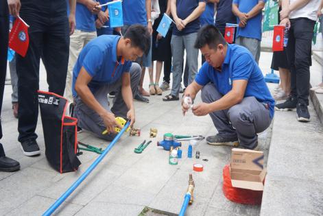 热火朝天,竞技如火如茶,比赛精彩纷呈。水表安装,队员们齐心协力,配合默契,裁管、上水胶布、装表接管手法娴熟,赢得观众的阵阵掌声