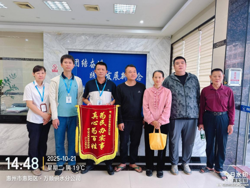 近日,惠阳水务有限公司万顺供水分公司收到锦上花大厦业主代表送来的一面锦旗——“为民办实事 真心为百姓”。这面锦旗不仅是对供水服务的诚挚认可,更是对公司网格化管理“主动靠前服务”理念的生动诠释。