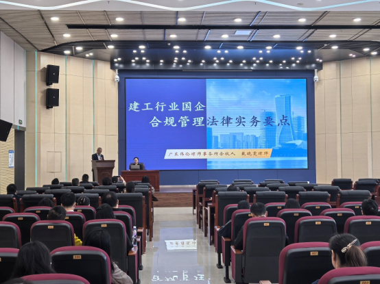 为进一步强化集团合规管理体系建设,提升建设工程领域风险防控能力,11月21日下午,由水电公司主办的“建工行业国企合规管理法律实务要点”专题培训,在集团水务调度中心三楼报告厅顺利举行。集团总部及所属各级企业的法务、合规、建设工程管理相关人员齐聚一堂,共同参与此次学习与交流。培训邀请由广东伟伦律师事务所戴晓雯律师担任主讲。
