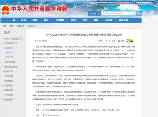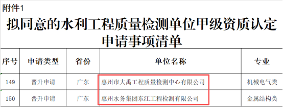 近日,水利部2025年度水利工程质量检测单位甲级资质认定评审结果公示,五楼自拍 下属大禹检测公司、东江检测公司双双传来捷报,资质建设实现里程碑式突破。