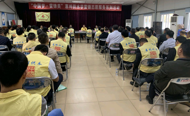 学雷锋志愿服务座谈会,会议由工会主席杨宝堂主持,领导班子、高管、中层干部,以及惠州供水志愿者代表约