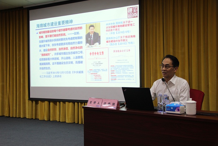 中国工程院院士、哈尔滨工业大学副校长任南琪以《海绵城市理念与黑臭水体治理实践》为题进行授课。在讲座中,任南琪介绍,水体治理原则是保障三大功能,即保障生物净化、生态景观、泄洪排涝功能,可以采取的措施和目标为严格控制点、面污染源,初期修复技术措施,持续的生态净化系统与措施,使其具有足够的水动力和泄洪能力。任南琪院士强调,黑臭水体治理是海绵城市建设的组成部分,黑臭水体治理必须树立海绵城市理念,并确立