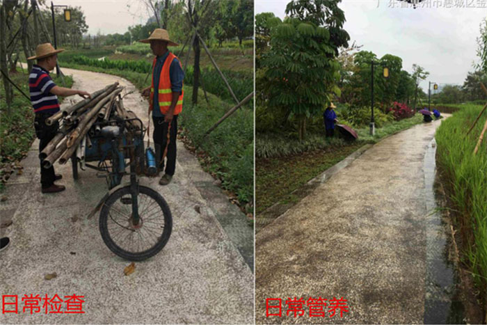 水投实业以提升管养效能为落脚点,坚持将精细化管理融入现场管护工作,多措并举,从细节入手,狠抓责任落实。一是从各部门抽调精干力量组建专门驻场工作小组,每日组织、指导、监督劳务队伍开展卫生清洁、绿化养护、治安巡查等工作,对症下药、直击管养薄弱环节,提升效率质量。二是初步建立现场巡查及问题反馈解决机制,认真做好日常台账管理,使现场问题得以及时发现、解决。三是持续加强与政府相关部门沟通联动,正逐步开展治安联防、蚊虫防治、污染源排放监控及市容环境等业务合作。四是以