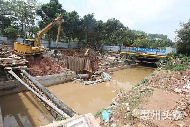 冷水坑河整治工程正在施工中。惠州报业全媒体记者朱金赞