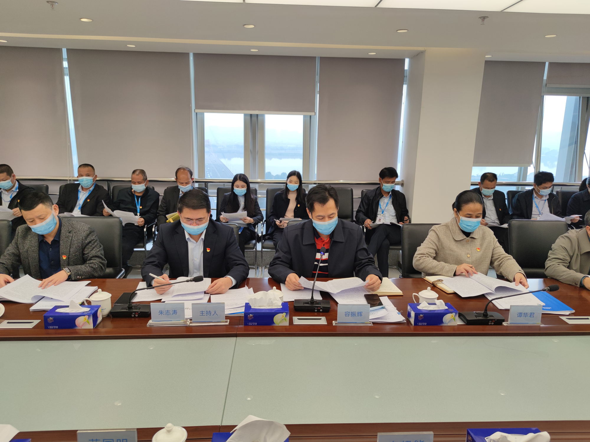 12月24日上午,市供水有限公司召开党委中心组第八专题学习(扩大)会暨2021年党支部书记抓基层党建工作述职评议会,会议由公司党委书记、董事长朱志涛主持,公司领导、资深经理、各支部书记及部分党员群众代表共45人参会。