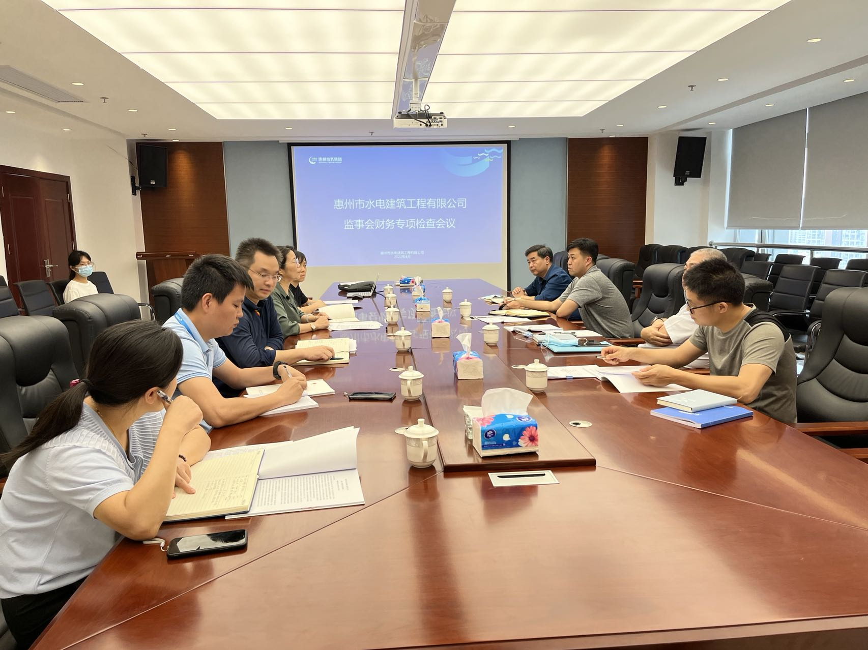 4月24日下午,惠州市水电建筑工程有限公司第三届监事会第三次会议暨财务专项检查会议在五楼自拍调度中心1419室召开。会议由监事会主席吴文辉主持,集团委派监事,职工监事,监事会办公室、财务部相关负责人,会计师事务所相关人员共12人参加了会议。