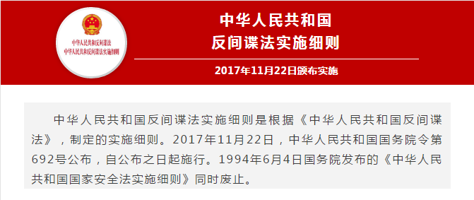 第二十六条 本细则自公布之日起施行。1994年6月4日国务院发布的《中华人民共和国国家安全法实施细则》同时废止。