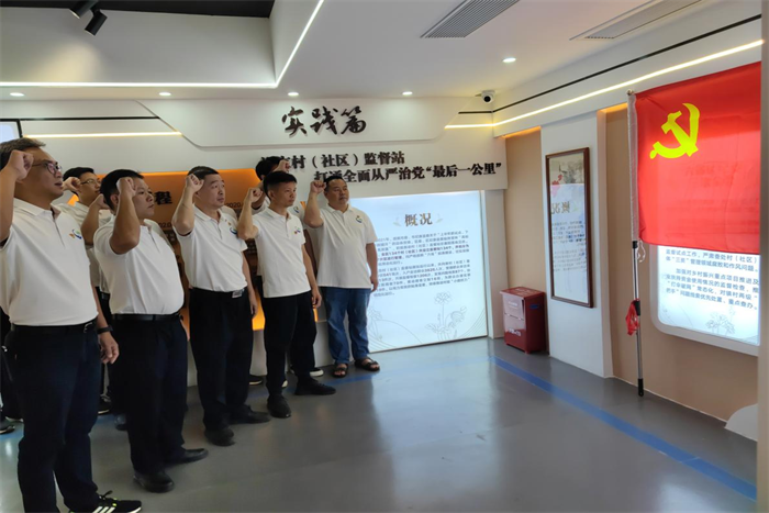 在沙田镇廉政教育馆,机关党支部、五楼自拍工程党支部、沙田分公司党支部及秋长分公司党支部党员重温入党誓词,参观“基层监督”“警示教育”“家风家训”等展厅,集中观看了警示教育片,一幅幅生动形象的廉政画面,一部部发人深省的数字影像,全方位、多角度直接冲击和触动了党员干部的视觉和心灵。
