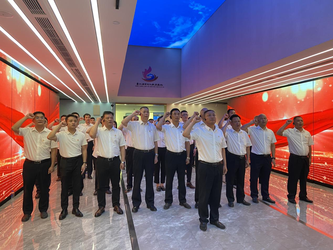 在“廉洁之道”展厅,全体党员干部在公司党支部书记杨宝堂的带领下,面向党旗、高举右拳、庄严地重温了入党誓词,进一步坚定了初心使命。