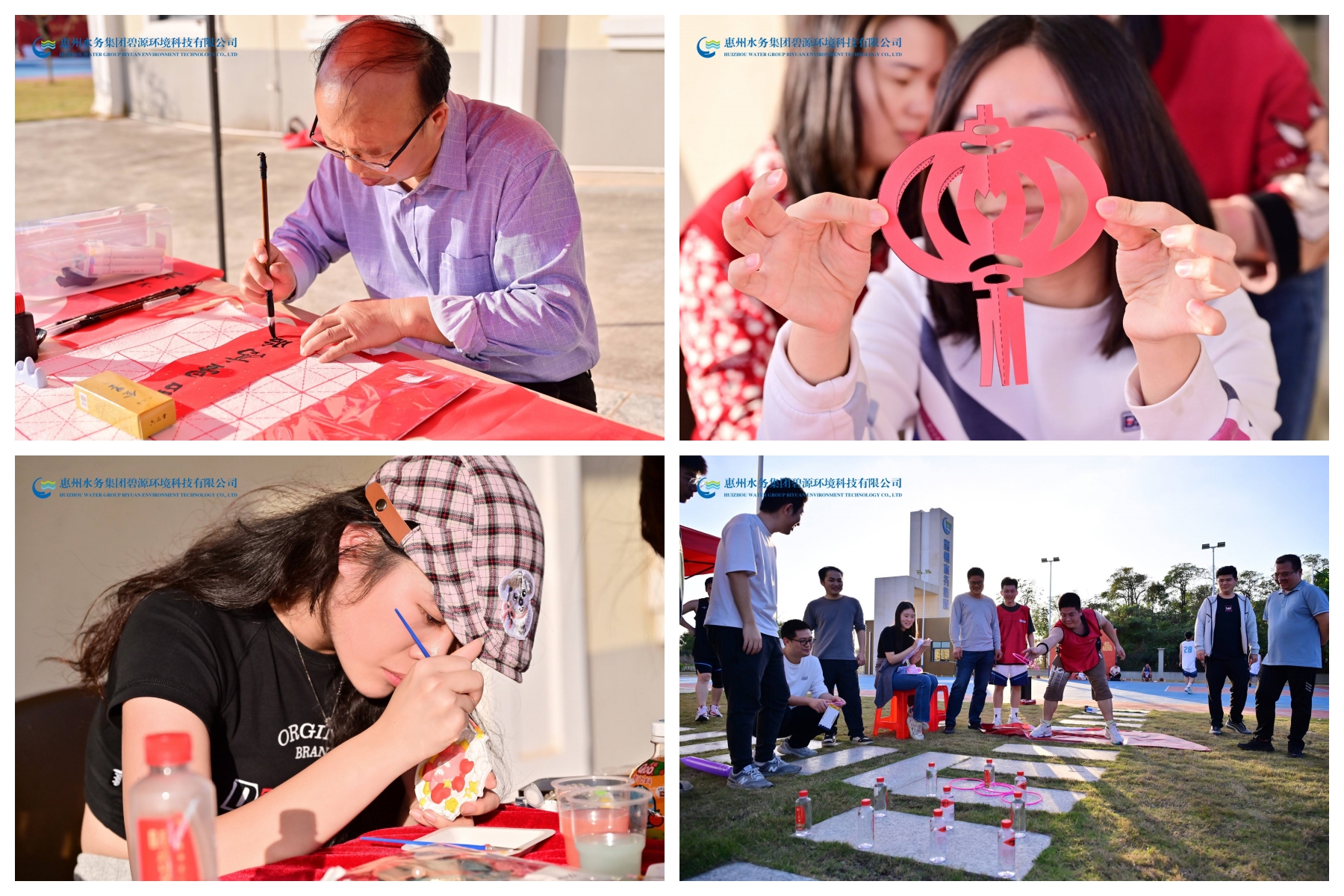 本次活动由传统文化迎新春和篮球竞技运动会两个环节组成。其中传统文化迎新春环节,参与活动员工通过现场制作龙年手办、剪窗花、写春联、写福字等活动形式,让员工能充分感受中华传统文化魅力以及即将到来的春节节日氛围,也寄托了员工对新年的美好憧憬与向往。除此之外,活动现场还开设了“趣味套圈圈”项目等,活动现场员工积极参与、反响热烈,共同感受迎新春活动的欢乐。