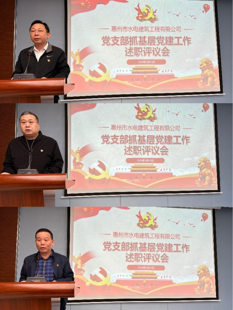 会上,二分公司党支部、三分公司党支部、房建分公司党支部等基层党组织书记依次进行现场述职,客观总结过去一年党建工作的经验和成效,对工作中存在的问题进行查摆,并明确了2024年的工作思路和工作目标。全体参会人员根据述职情况和日常工作表现,对各党支部书记进行了评议打分。。