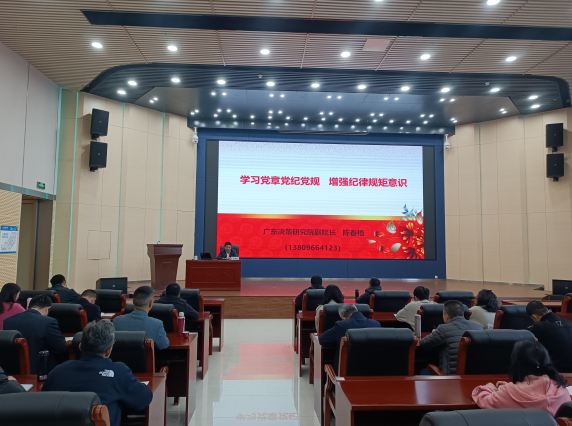 广东决策研究院副院长陈春梧,为集团系统基层一线普通党员代表210余人讲授《学习党章党规党纪,增强纪律规矩意识》。