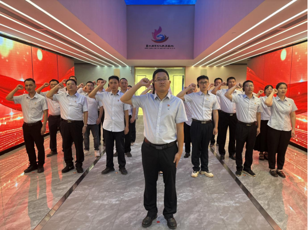 在最后宣誓环节,全体党员面对鲜红的党旗,高举右拳,庄严宣誓:“我志愿加入中国共产党,拥护党的纲领,遵守党的章程……”铿锵有力的誓言在展厅内回荡,表达了党员们坚守廉洁底线、永葆政治本色的坚定决心。