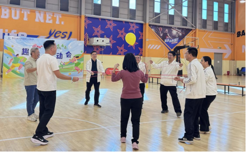 “无敌风火轮”中,队员们化身“人形履带”,彩色布条滚出团队节奏;“同心击鼓”环节,8人拉绳颠球,每一次弹跳都是默契的见证;“两人三足”项目,“绑住的是腿,连起的是心”,赛场秒变大型默契考验现场。女子投篮赛的飒爽英姿、中青年篮球对抗的激情碰撞,更将活动推向高潮。